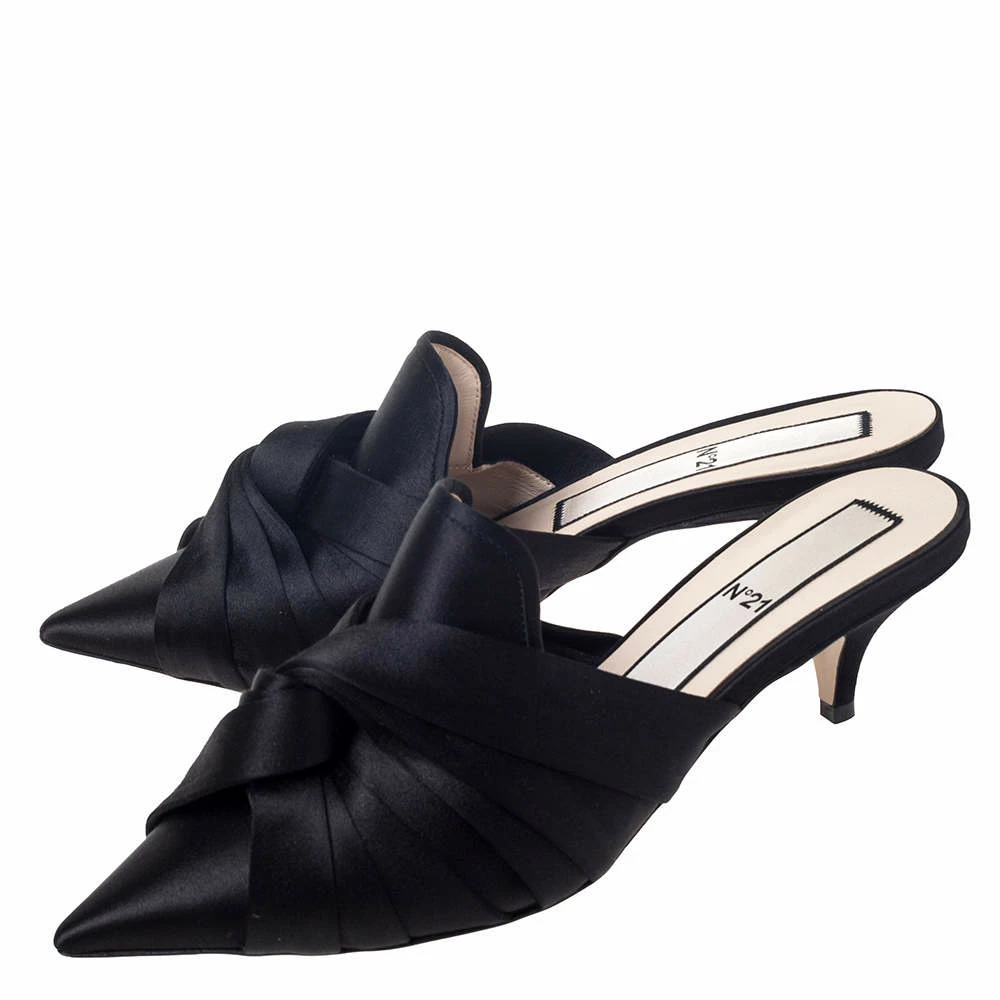 One look at this pair of N21 mules and our hearts skip a beat. These beautiful mules have been styled with perfection just so a diva like you can flaunt them. Black in shade, they have been designed with knot details on the vamps and low heels. They’ll look amazing with all your dresses this season.
