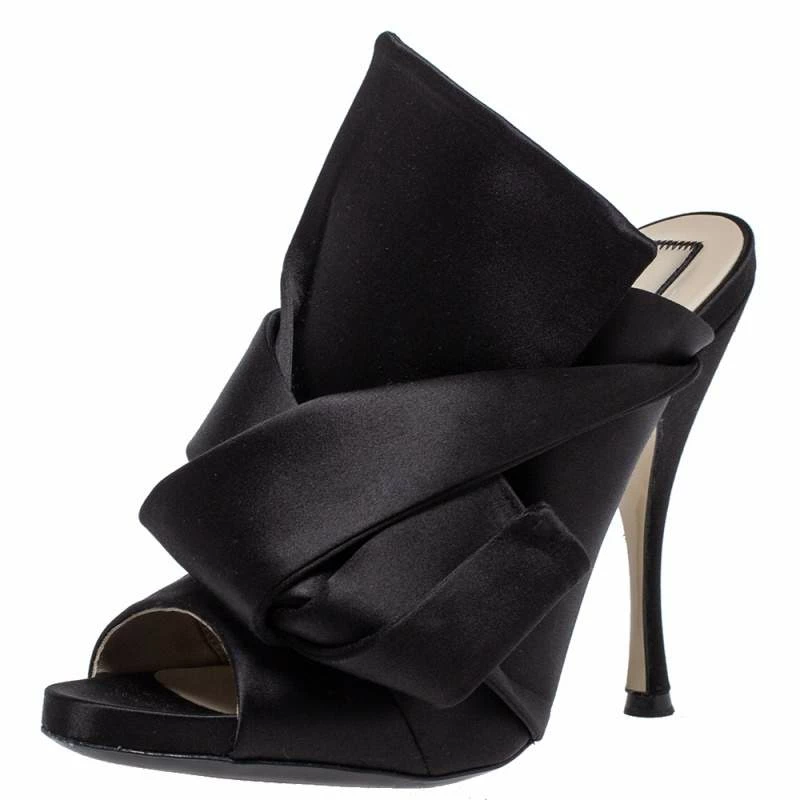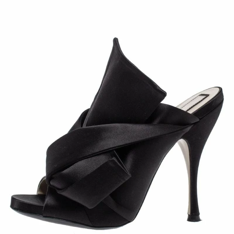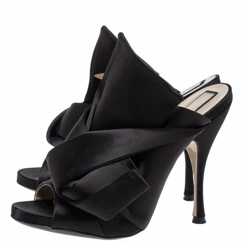 One look at this pair of N21 mules and our hearts skip a beat. These beautiful mules have been styled with perfection just so a diva like you can flaunt them. Black in shade, the pair has been designed with big knots on the satin uppers. They’ll look amazing with all your dresses this season.
