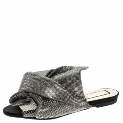 One look at this pair of N°21 mules and our hearts skip a beat. These beautiful mules have been styled with perfection just so a diva like you can flaunt them. Metallic brown in shade, the pair has been designed with big crystal-embellished knots on the uppers.