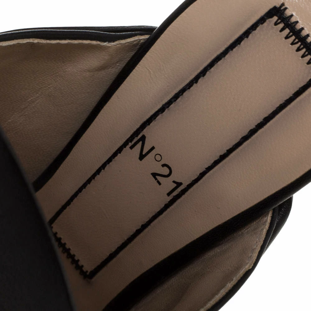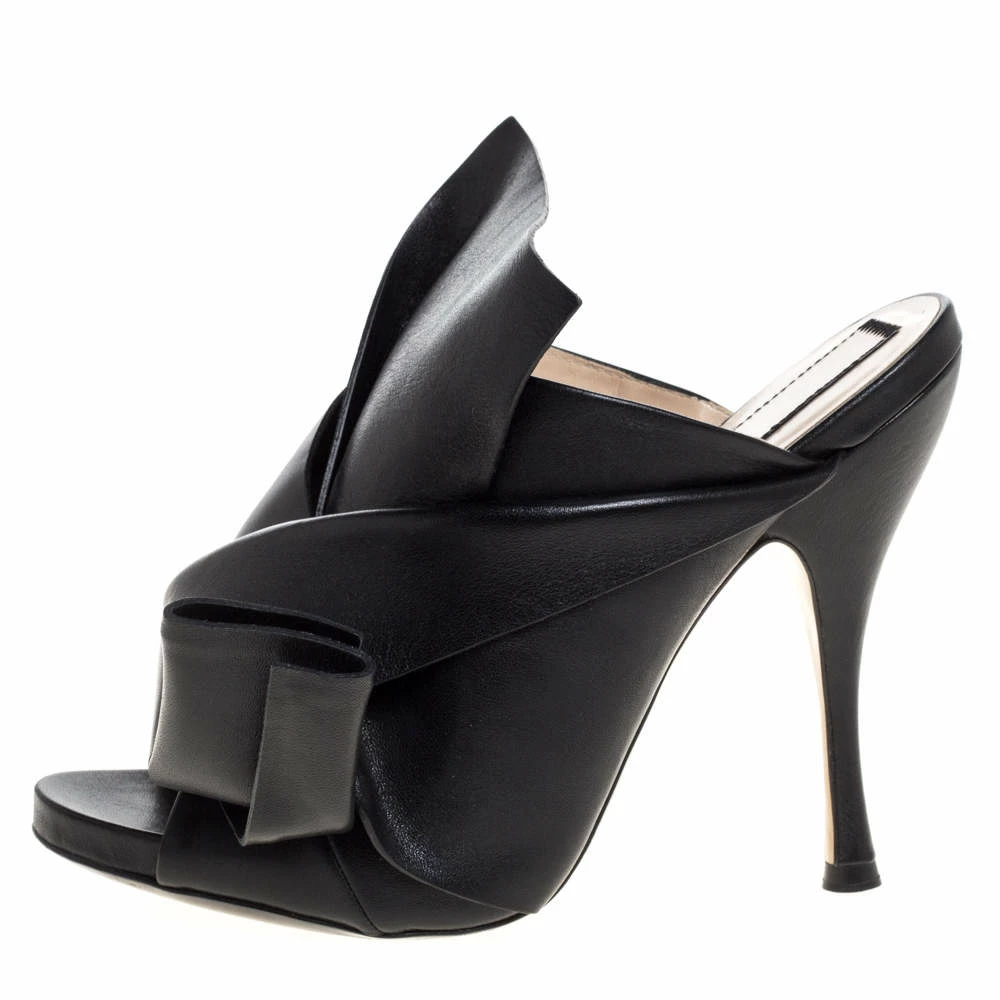 These conversation starter Ronny mules from N°21 are worth the buy. Crafted from black leather, this pair of mules is ornate with a draped pleat detail on the vamp. The insoles are lined with leather. The pair is complete with a 12 cm stiletto heel.