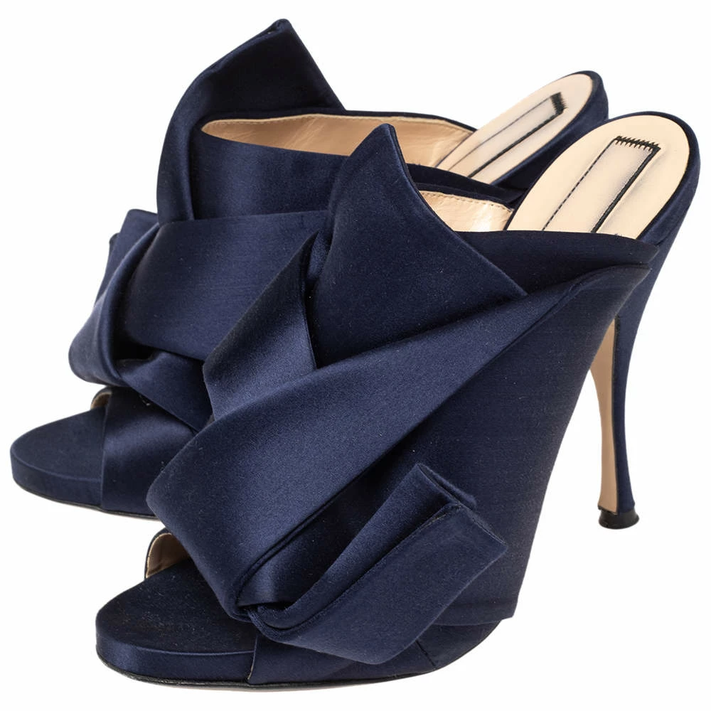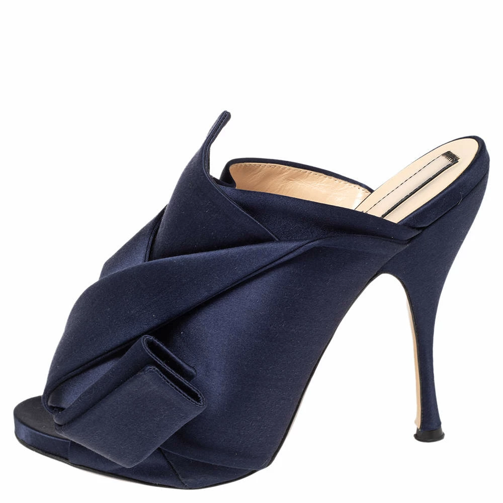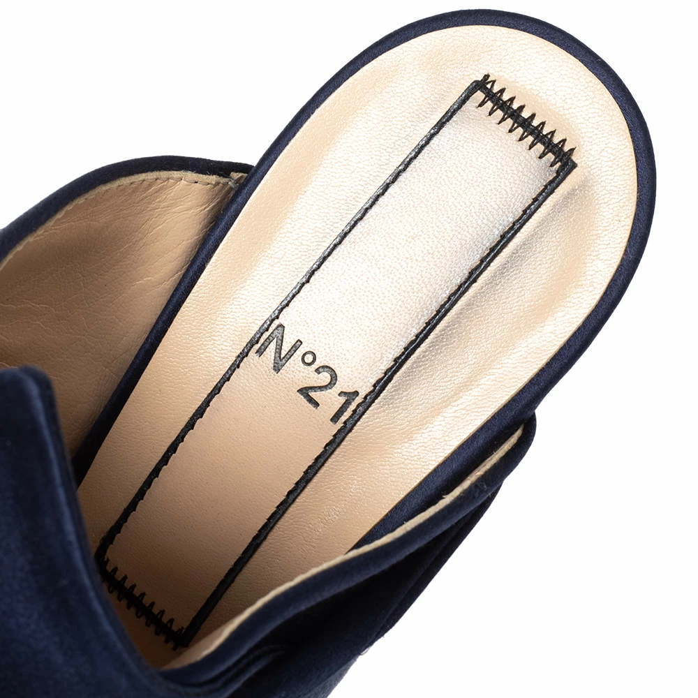 Leave your audience spellbound with this pair of N21 mules. These beautiful mules have been styled with perfection just so a diva like you can flaunt them. Navy blue in shade, the pair has been designed with big knots on the satin uppers. They’ll look amazing with all your dresses this season.