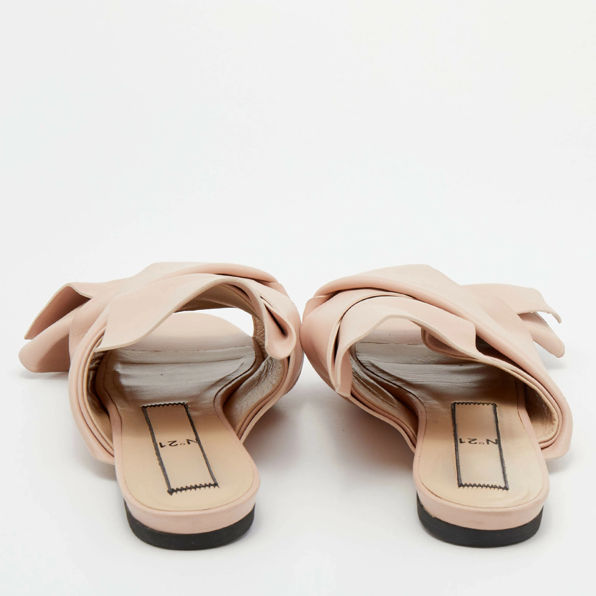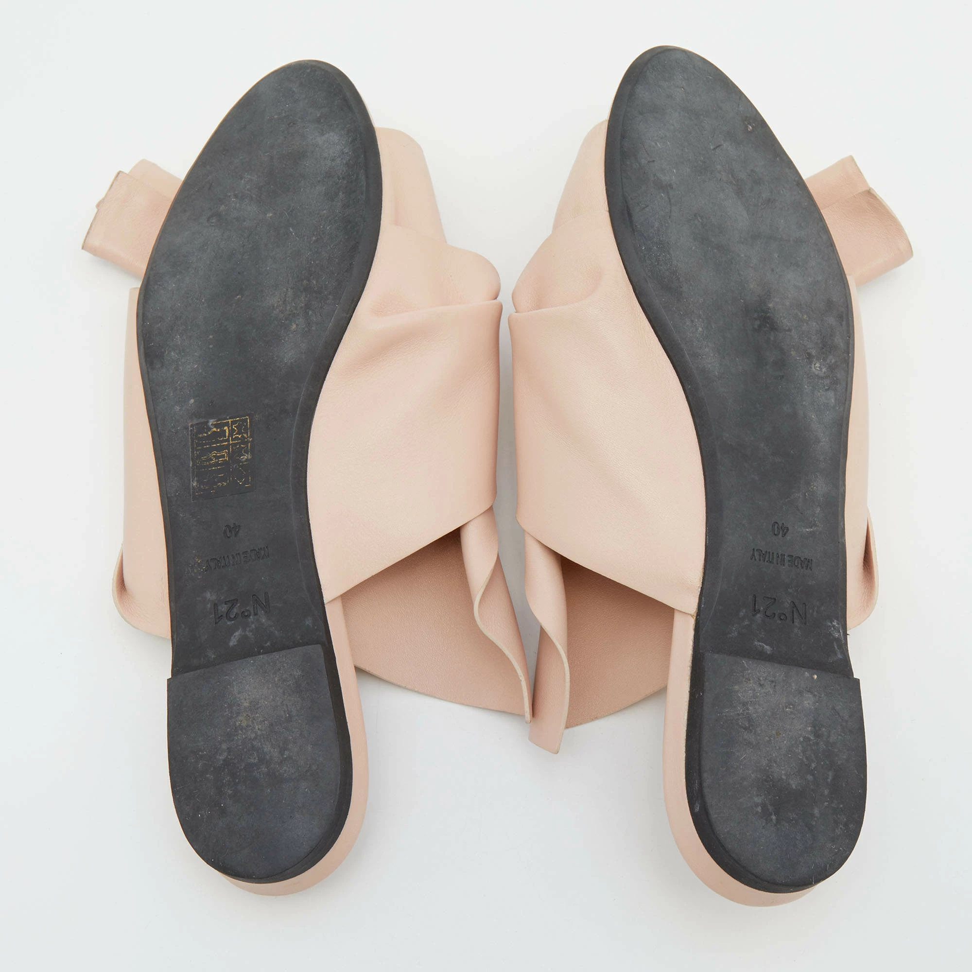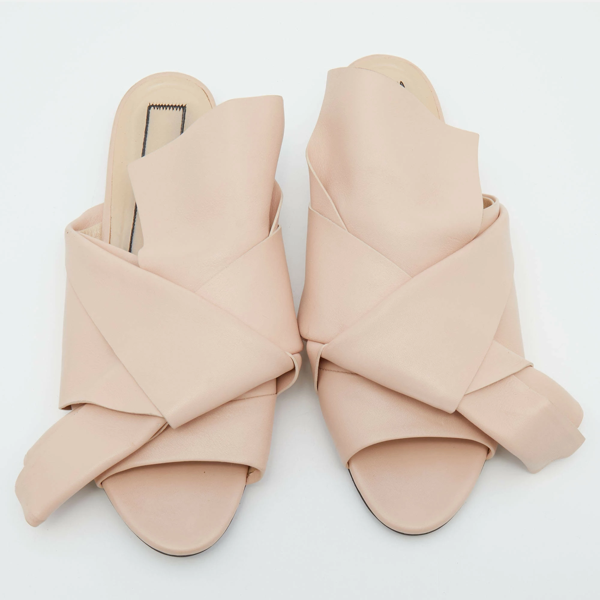Characterized by exaggerated knots, the Nº21 mules are a statement pair and can take your look to a whole new level. They are skillfully crafted from leather in a beige hue and feature open-toes. Style your summer outfits with them and look chic!