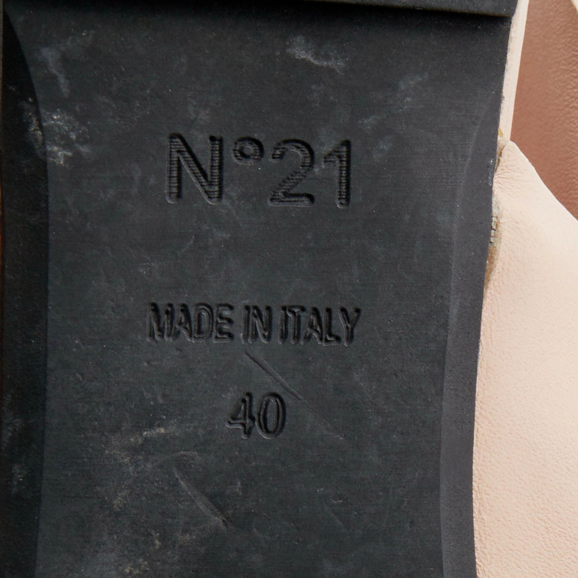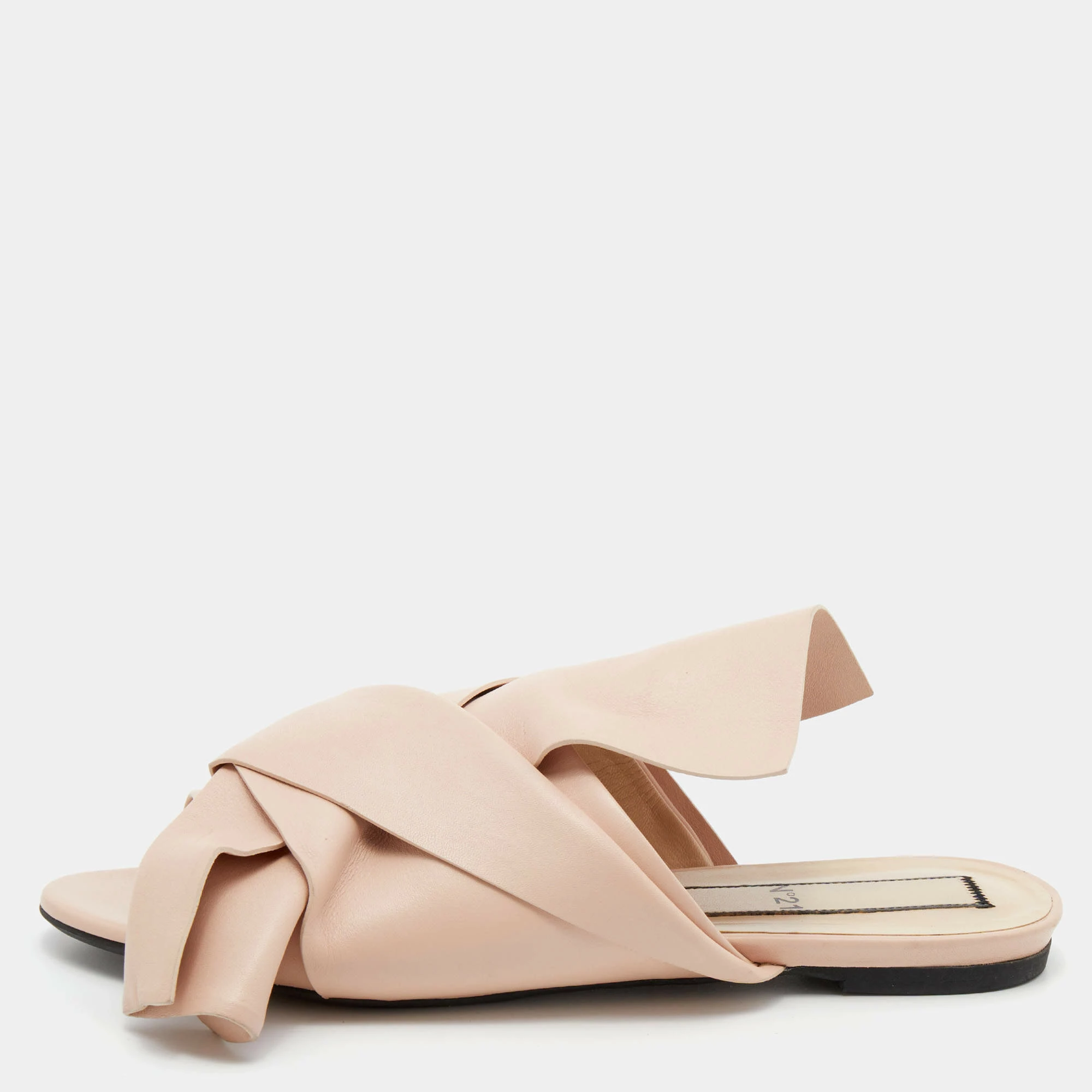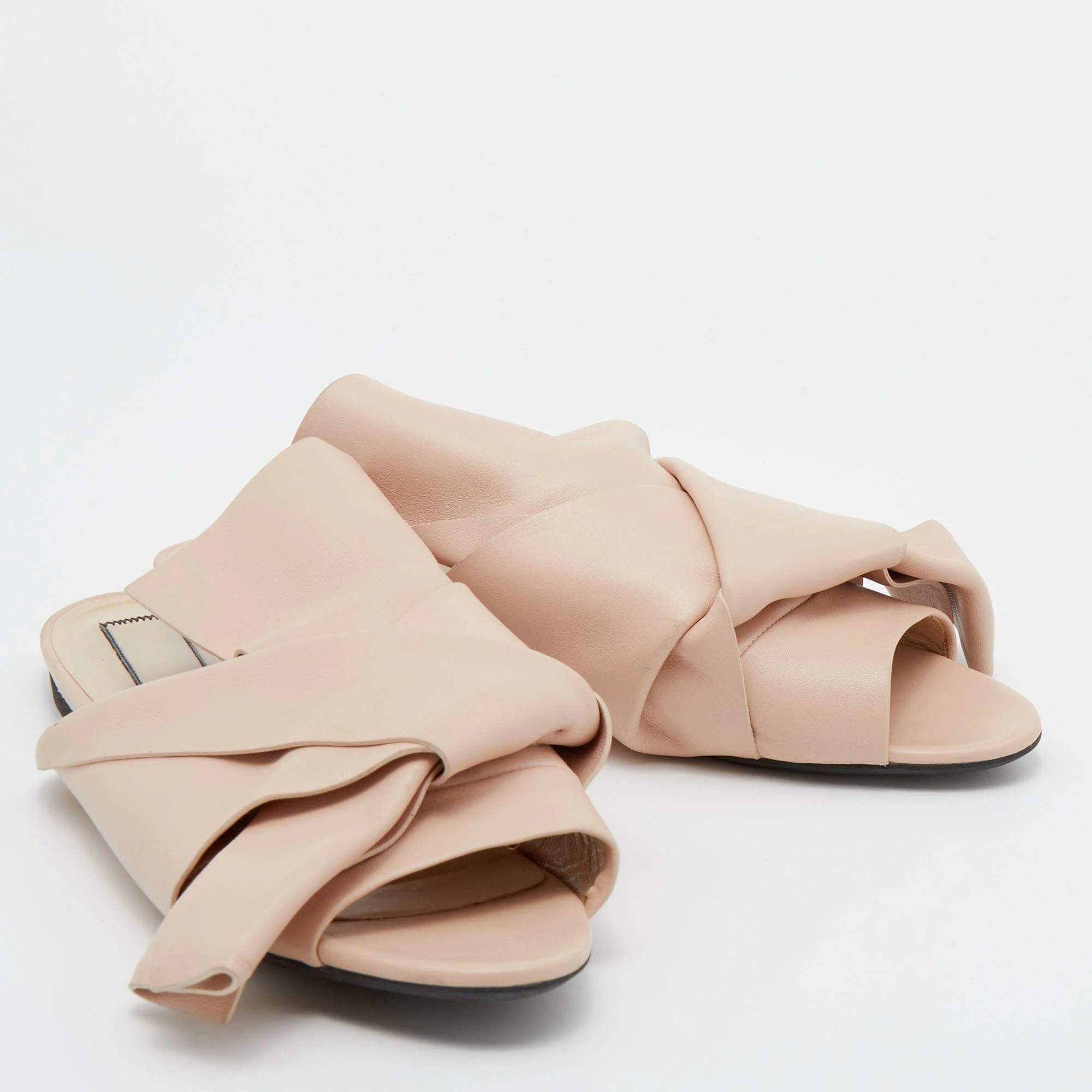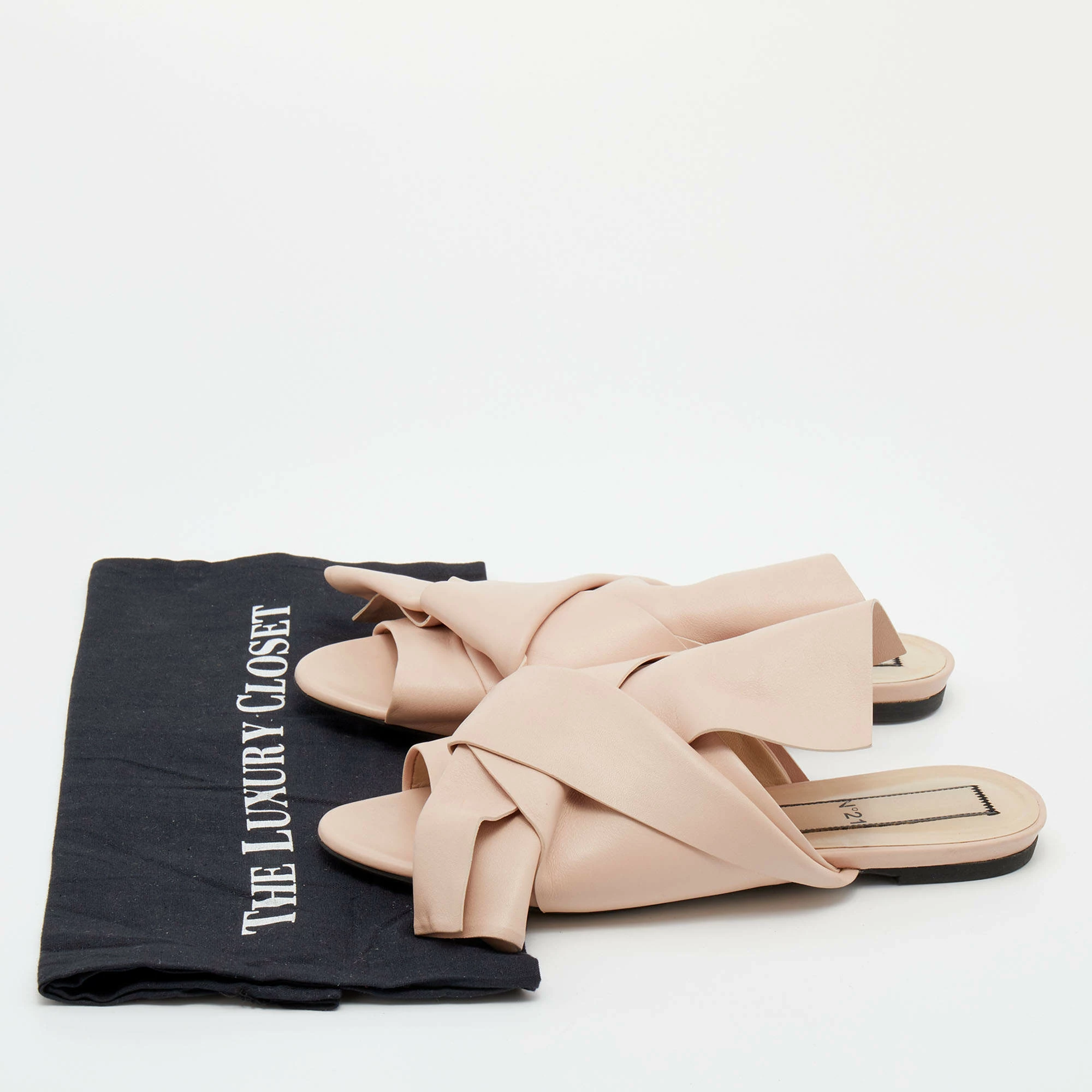 Characterized by exaggerated knots, the Nº21 mules are a statement pair and can take your look to a whole new level. They are skillfully crafted from leather in a beige hue and feature open-toes. Style your summer outfits with them and look chic!