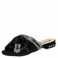 Characterized by exaggerated knots, the Nº21 flats are a statement pair and can take your look to a whole new level. They are skillfully crafted from satin in a black shade and feature open-toes and crystal embellishments on the uppers and counters. These slides are equipped with comfortable insoles that offer maximum comfort while walking.