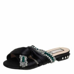 Characterized by exaggerated knots, the Nº21 flats are a statement pair and can take your look to a whole new level. They are skillfully crafted from satin in a black shade and feature open-toes and crystal embellishments on the uppers and counters. These slides are equipped with comfortable insoles that offer maximum comfort while walking.