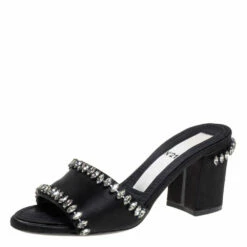 How pretty are these slide sandals from Nº21! The black sandals are crafted from satin and feature an open toe silhouette. They flaunt single vamp straps and 7.5 cm block heels with exquisite crystal embellishments adorning them. Comfortable insoles complete this gorgeous pair.