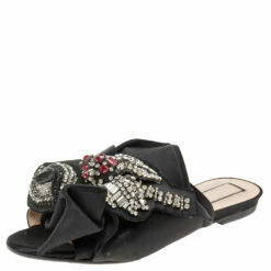 Characterized by exaggerated knots, the Nº21 flats are a statement pair and can take your look to a whole new level. They are skillfully crafted from satin in a black shade and feature embellishments. These slides are equipped with comfortable insoles that offer maximum comfort while walking.