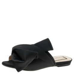 Characterized by exaggerated knots, the Nº21 flats are a statement pair and can take your look to a whole new level. They are skillfully crafted from satin in a black shade and feature open-toes. These slides are equipped with comfortable insoles that offer maximum comfort while walking.