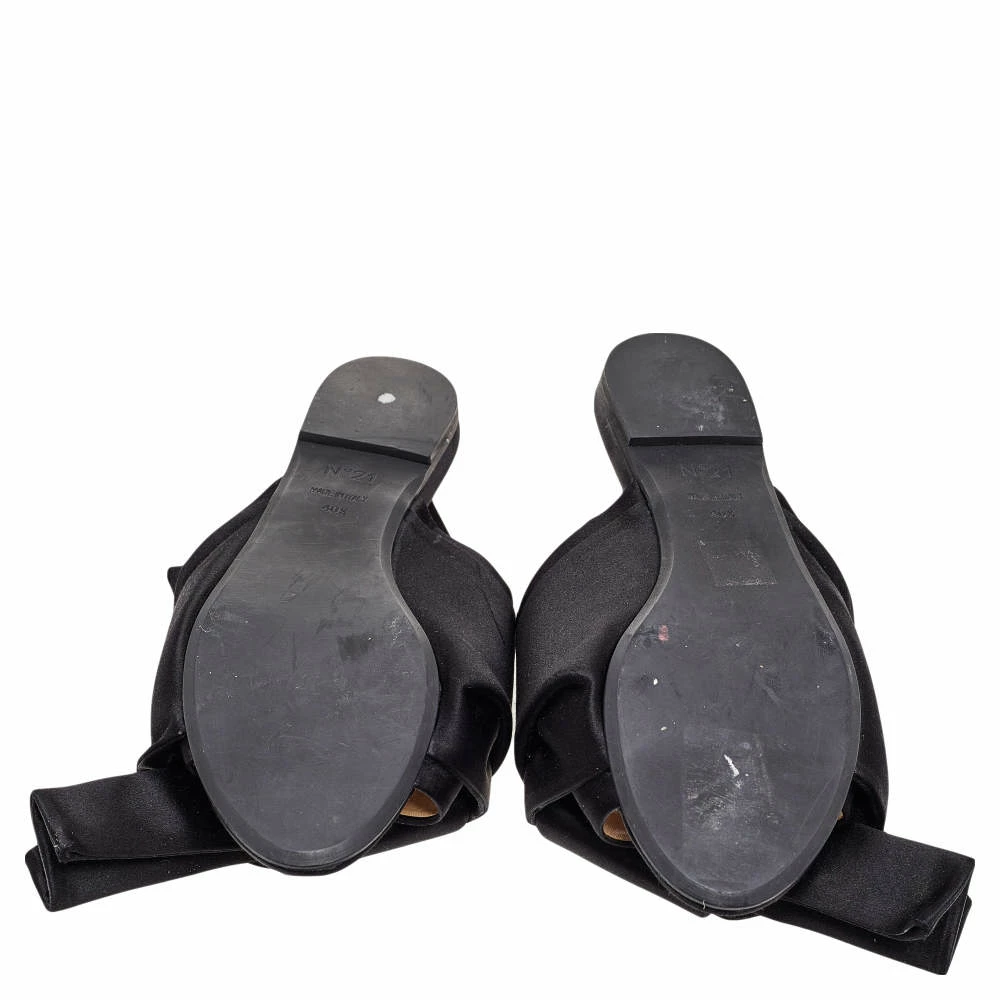 Characterized by exaggerated knots, the Nº21 flats are a statement pair and can take your look to a whole new level. They are skillfully crafted from satin in a black shade and feature open-toes. These slides are equipped with comfortable insoles that offer maximum comfort while walking.