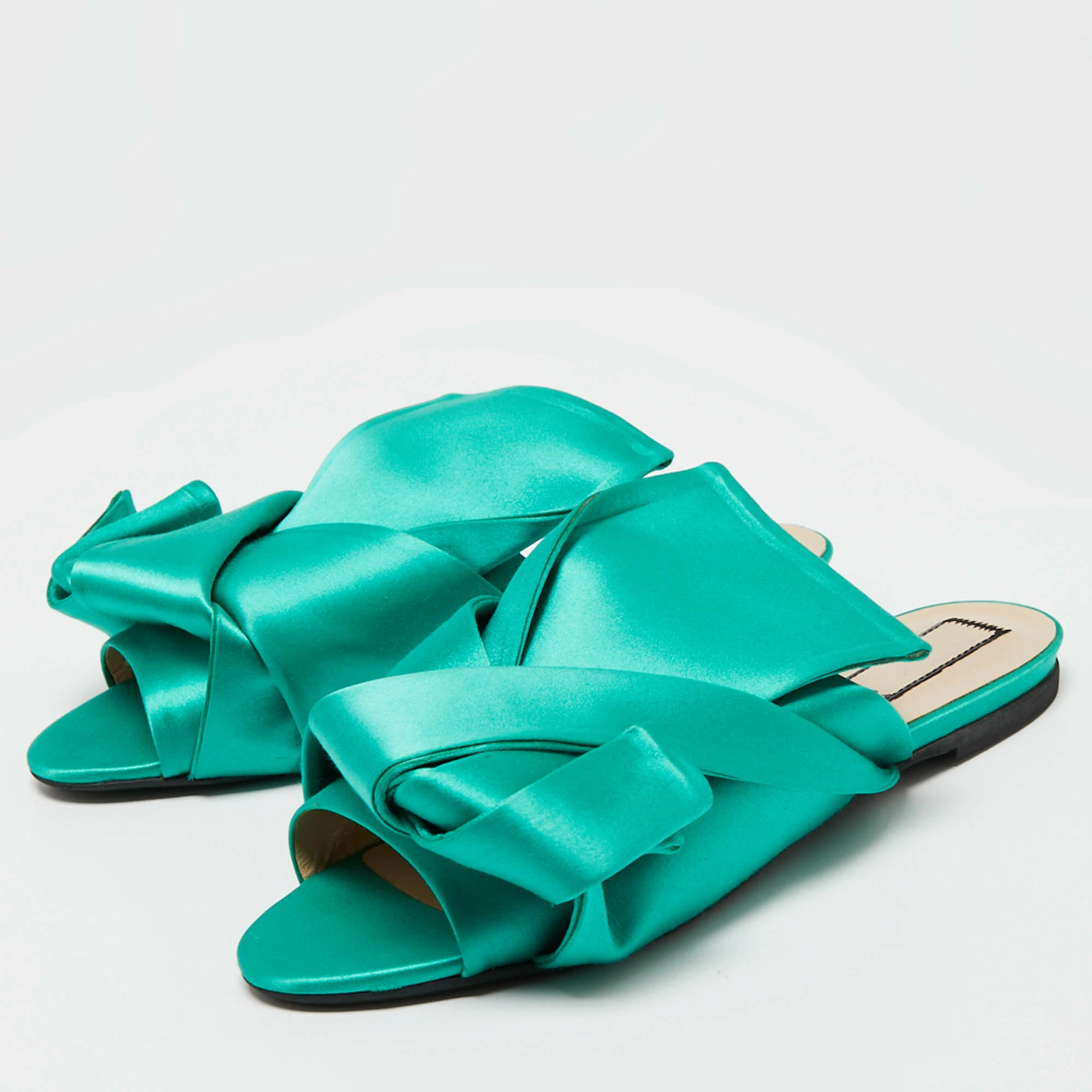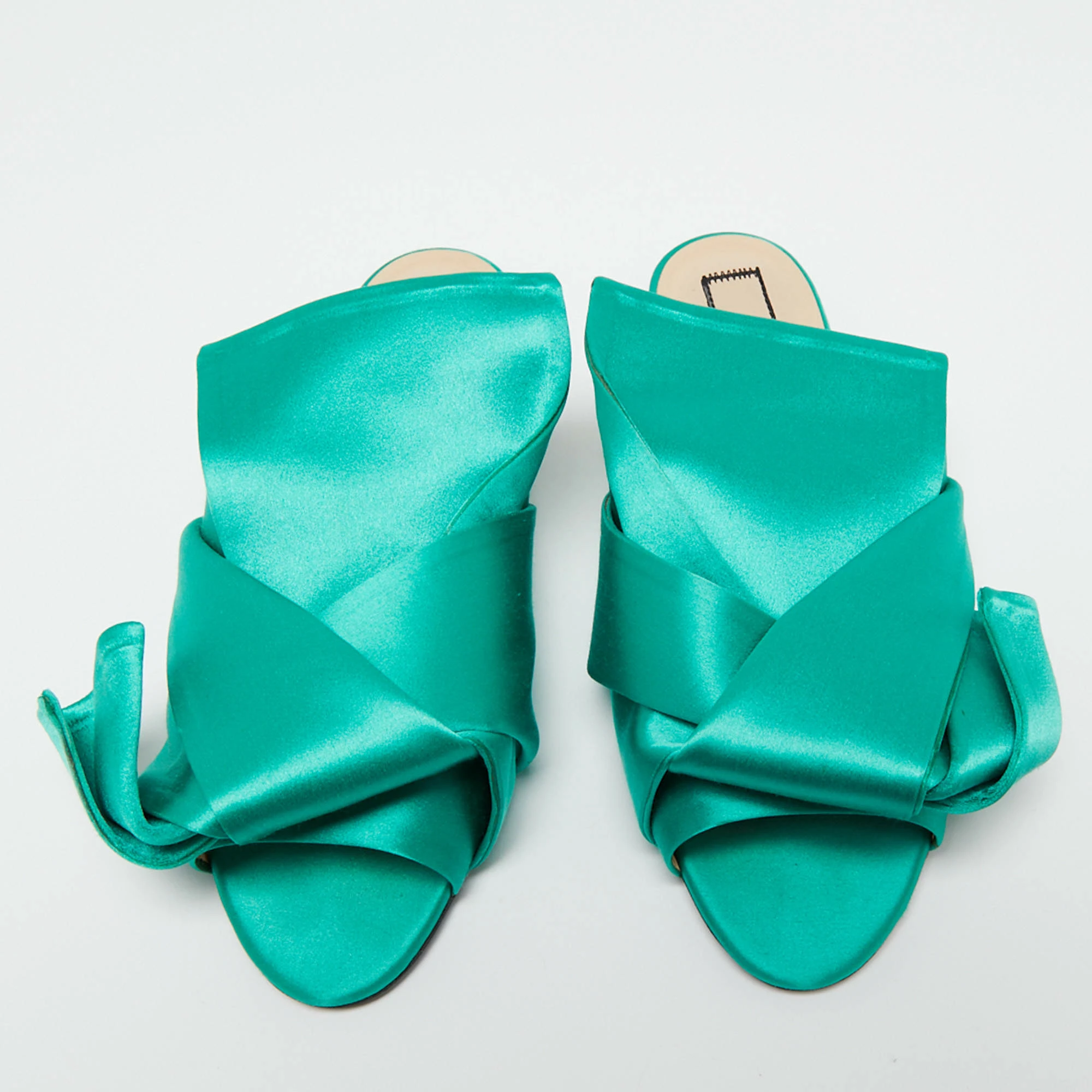 Characterized by exaggerated knots, the Nº21 mules are a statement pair and can take your look to a whole new level. They are skillfully crafted from satin in a green hue and feature open-toes.