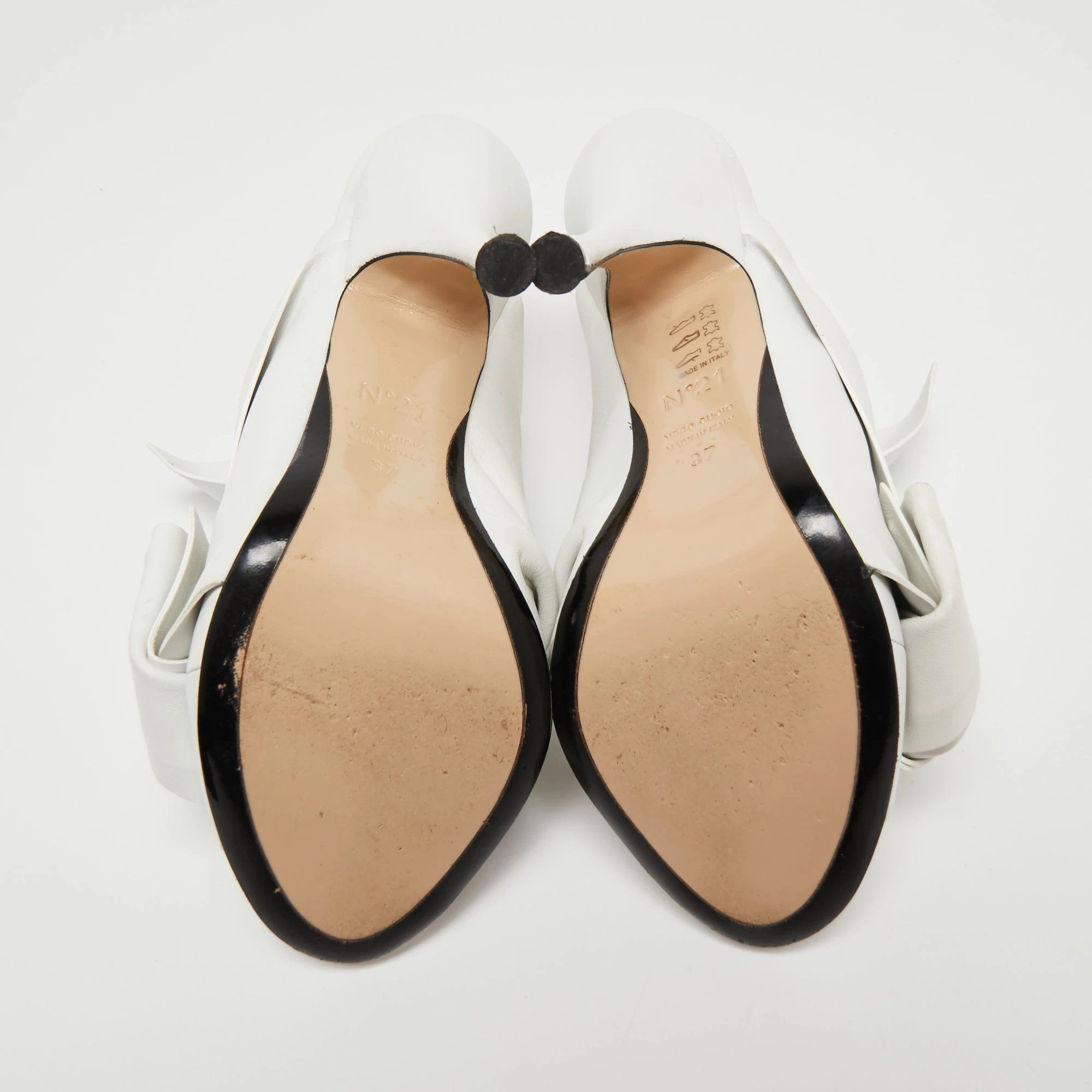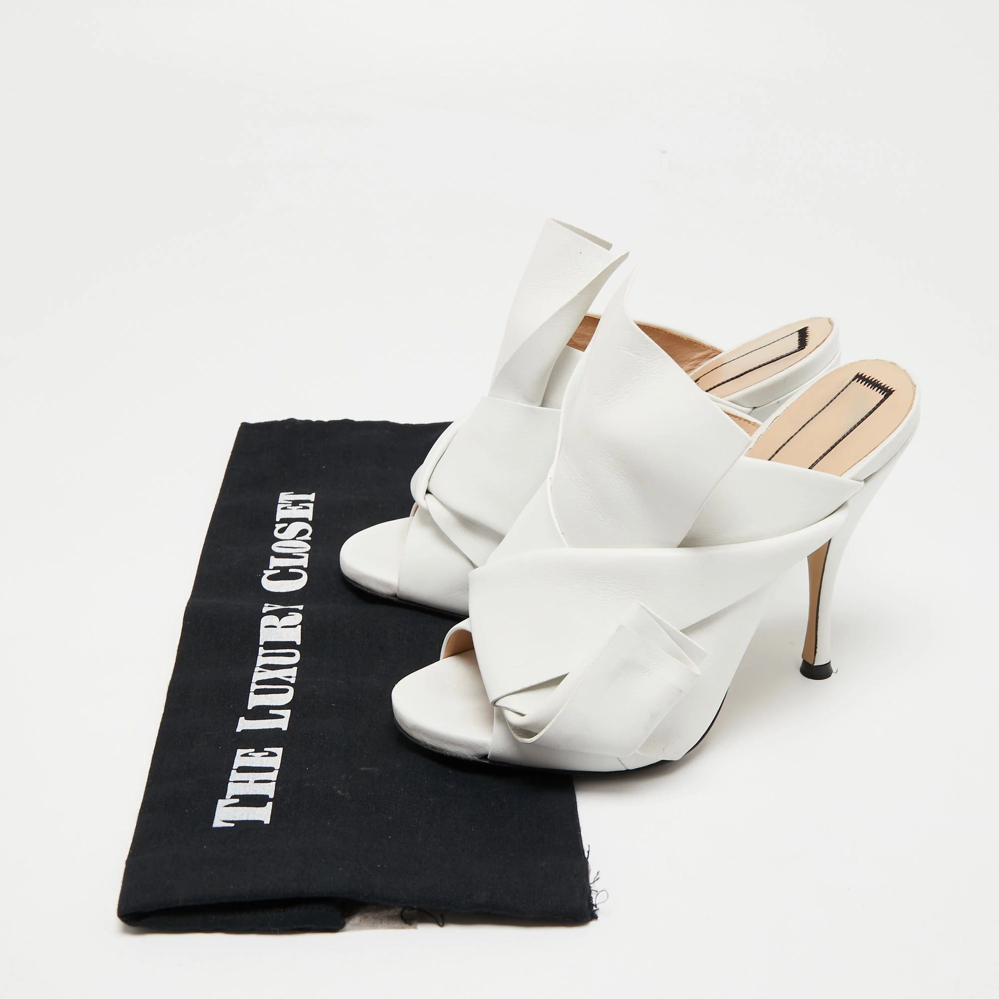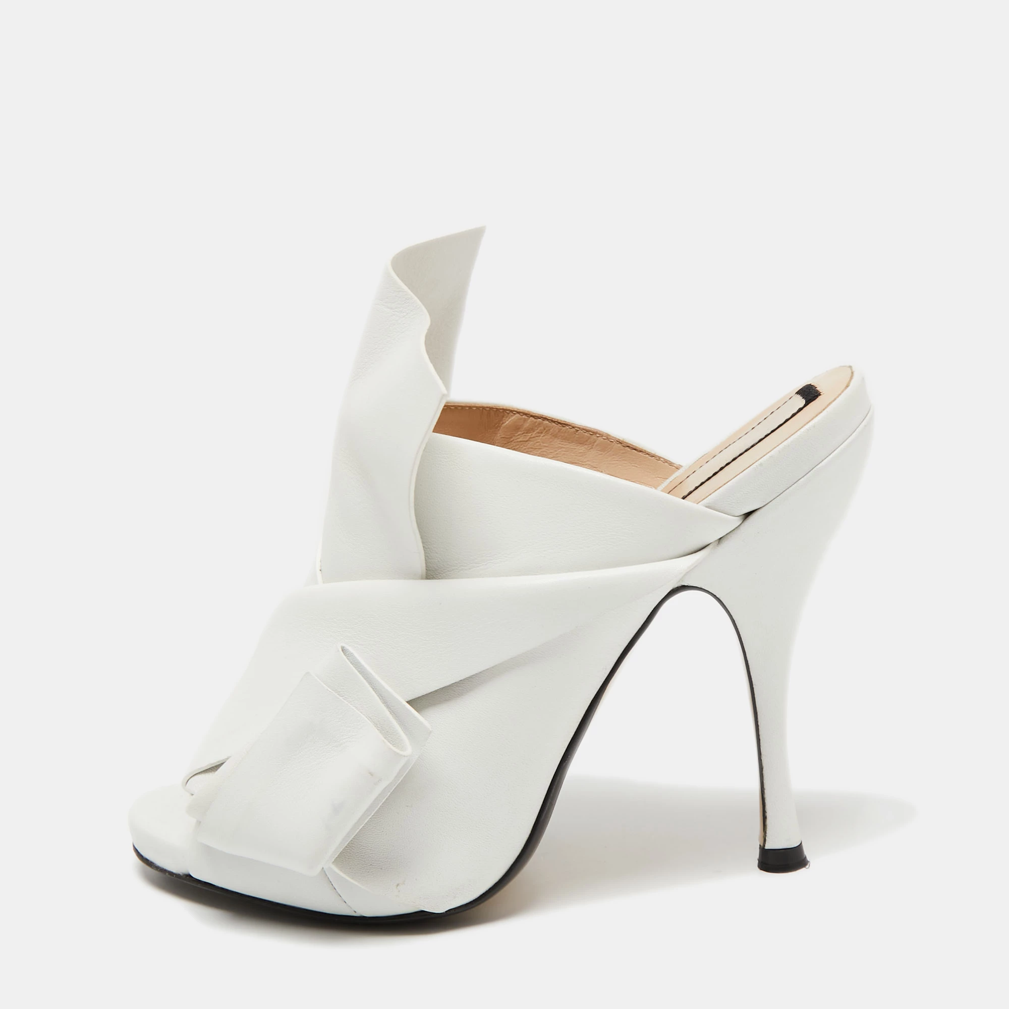 Characterized by exaggerated knots, the Nº21 mules are a statement pair and can take your look to a whole new level. They are skillfully crafted from leather in a white hue and feature open-toes. These mules are elevated on slender heels for a chic finish.