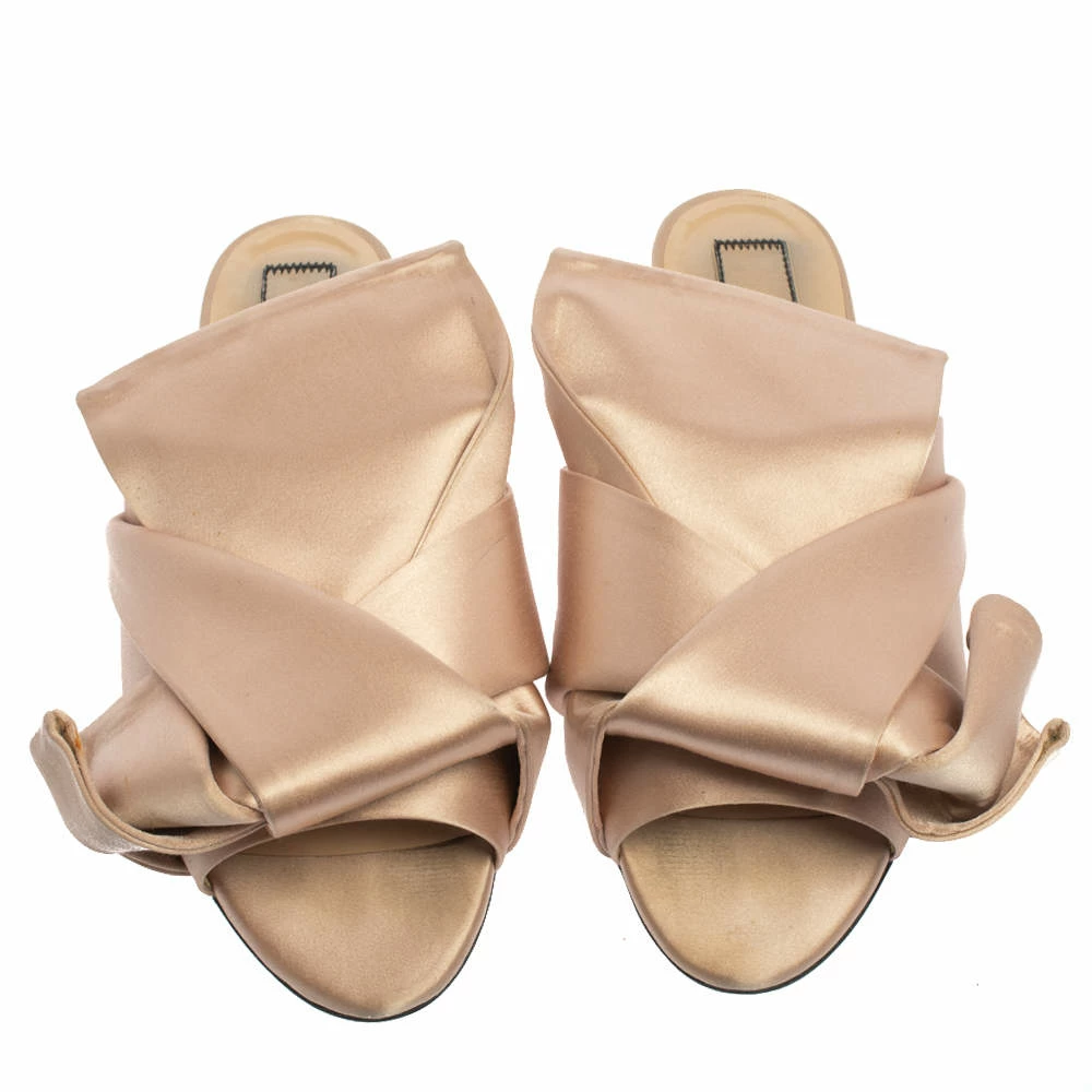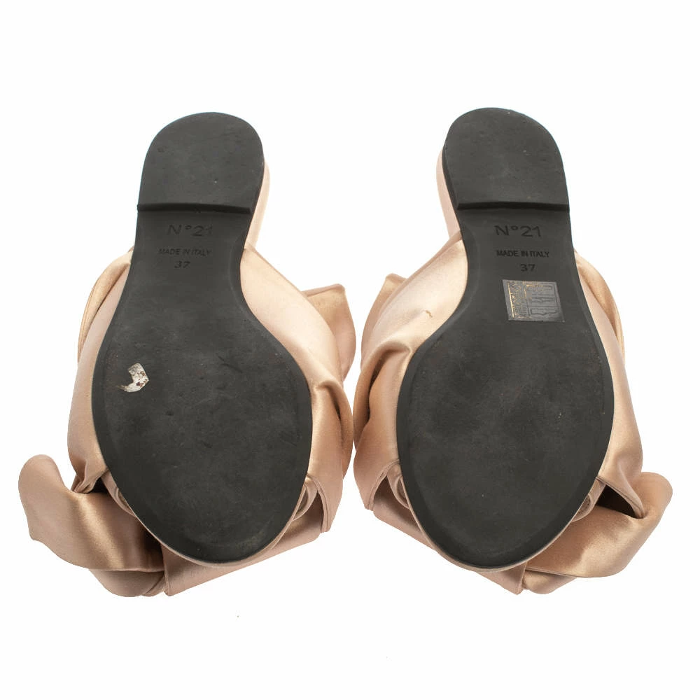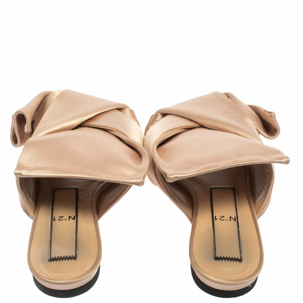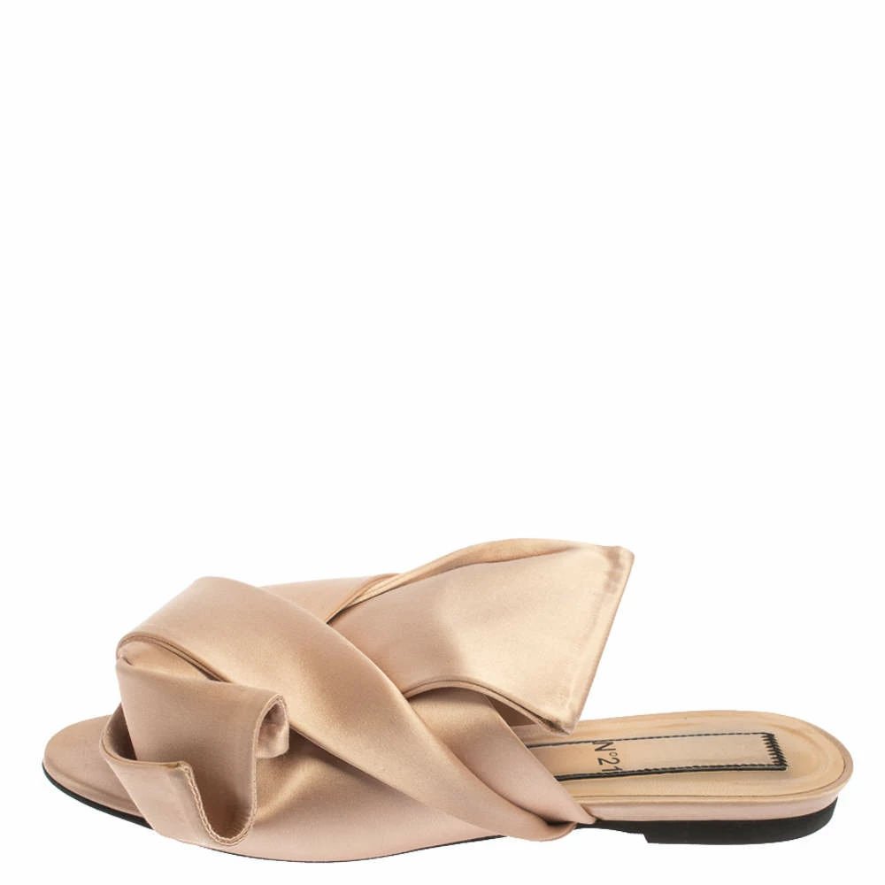 These beautiful N21 slides have been styled with perfection just so a diva like you can flaunt them. Pale pink in shade, the slides have been designed with big knots on the satin uppers. They’ll look amazing with all your dresses this season.