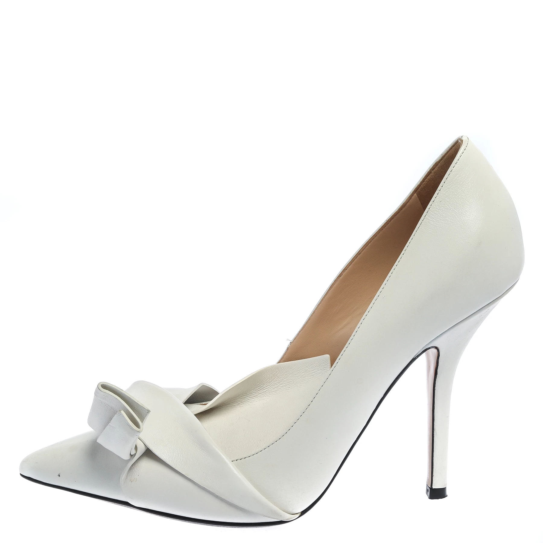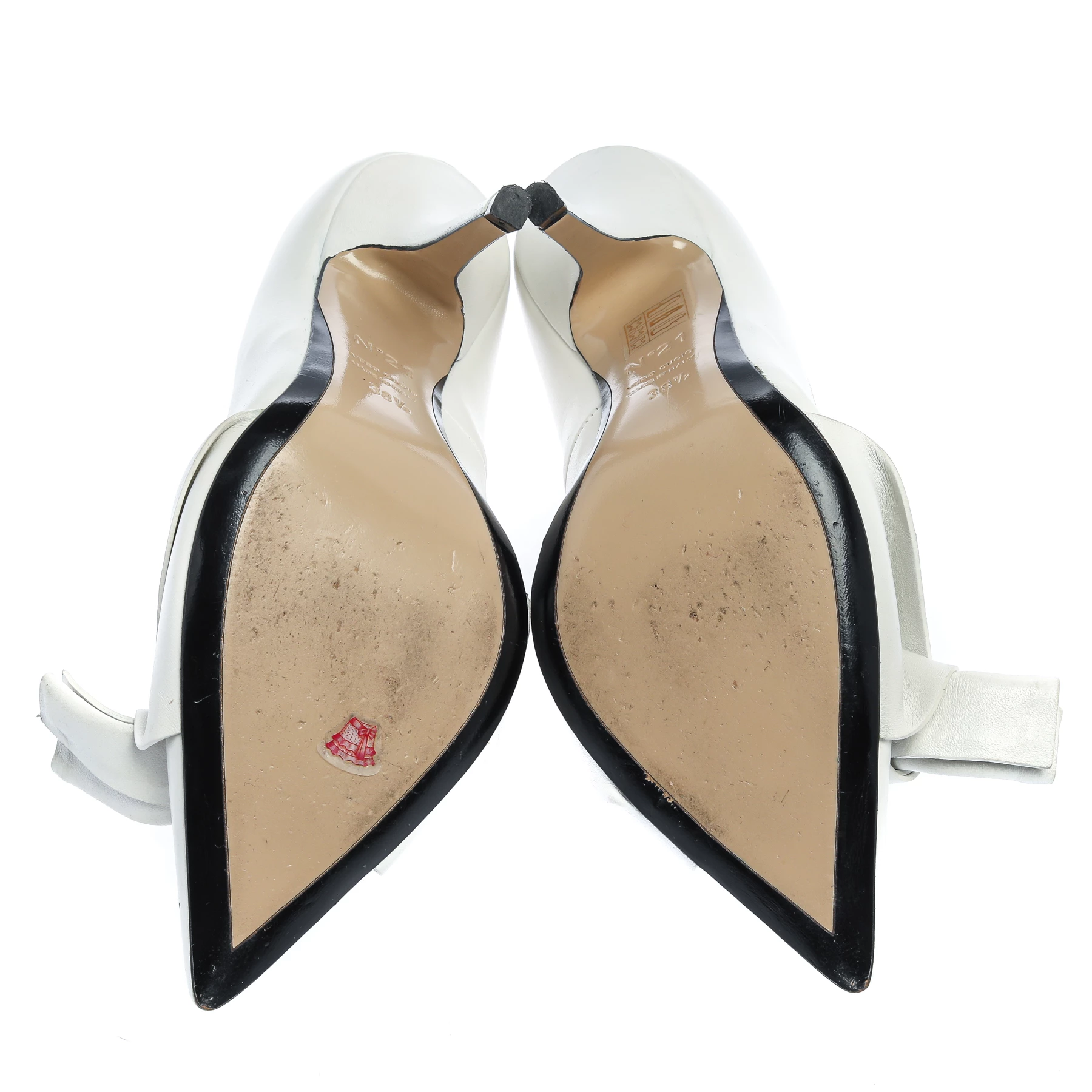 Crafted amazingly from fine leather, these pumps will be an elegant addition to your wardrobe. This pair by N21 is characterized by the notable knot detail at the pointed-toe vamps. Add a touch of high-fashion to your look by wearing this pair of gorgeous white pumps.
