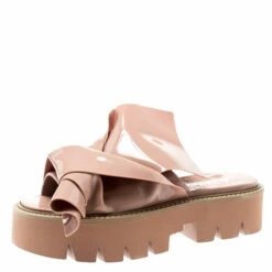 This beige pair refines your look with its unique style and extravagant look. These N21 X Kartell slides are crafted from PVC material and detailed with the established knot design at the front. These platforms come with a comfortable rubber sole and feature a heel of height 4.5cm.