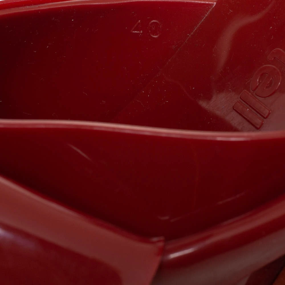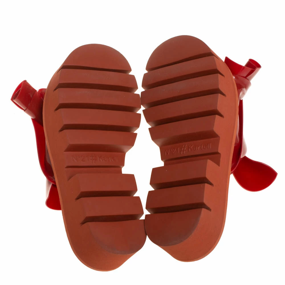 These N21 X Kartell slides are simply luxe! The red slides are crafted from rubber and designed with the signature wide knotted vamp straps and an open back silhouette. Set on thick platforms and offering a great deal of comfort, they will surely be a worthy buy.